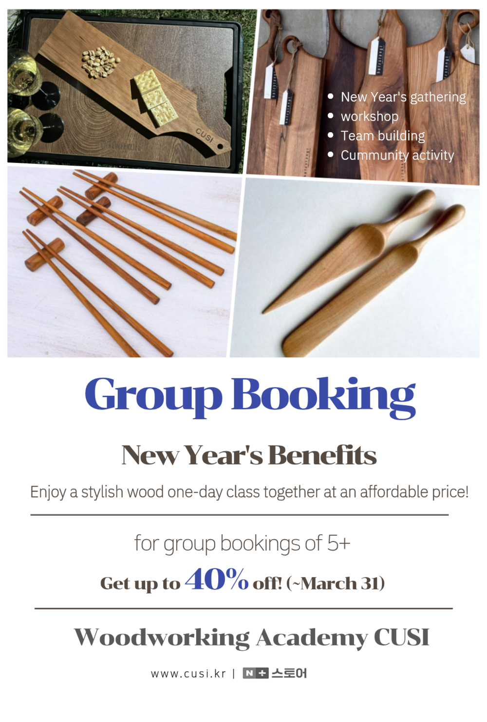 This is a woodworking class experience featuring unique items developed by CUSI. It's a special time to experience the warmth of wood and the joy of creating.
